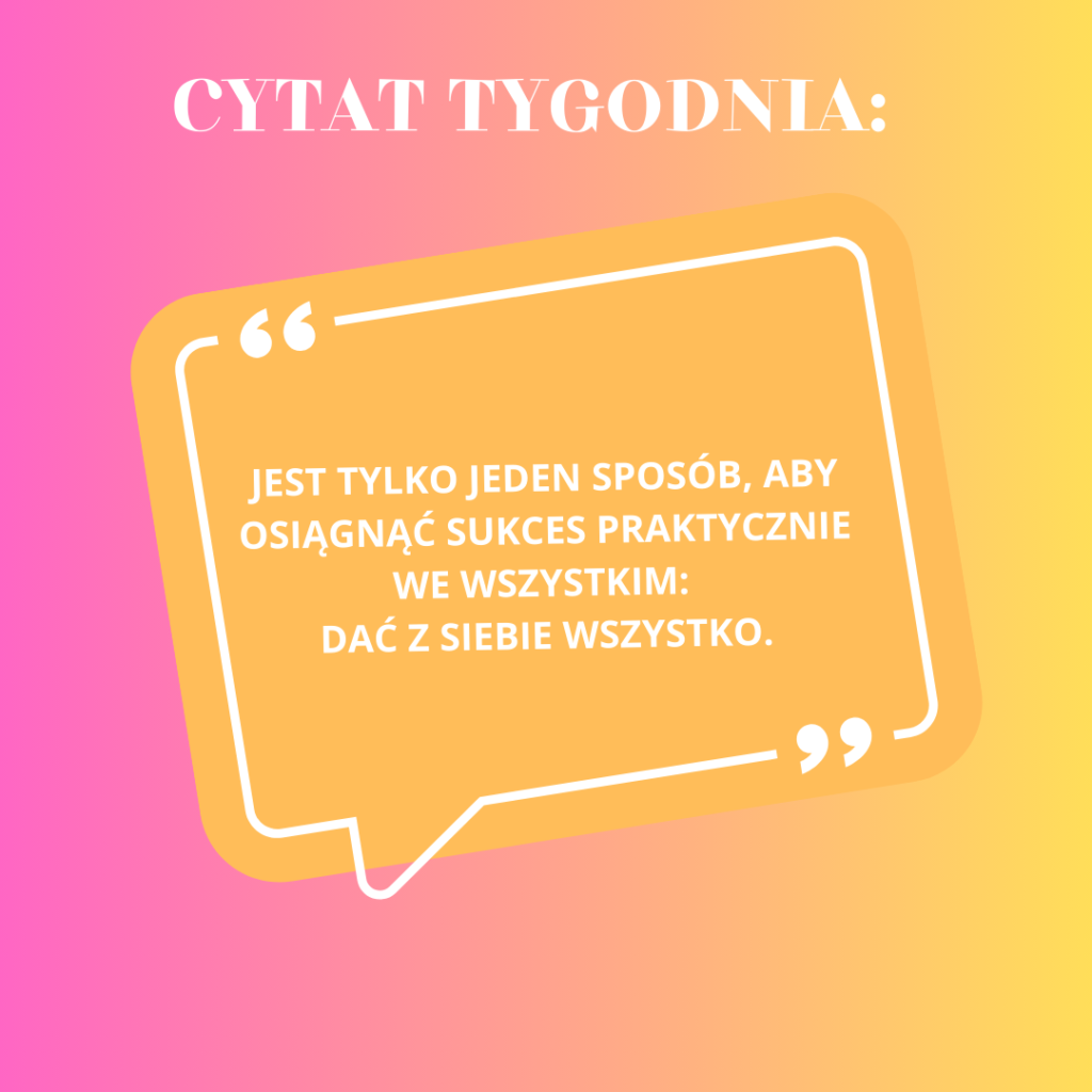 Jak mija urlop ? Czy jesteście na koloniach, obozach itd. ? Podsyłam cytat tygodnia, dający kopa motywacyjnego do działania : „JEST TYLKO JEDEN SPOSÓB, ABY OSIĄGNĄĆ SUKCES PRAKTYCZNIE WE WSZYSTKIM: DAĆ Z SIEBIE WSZYSTKO”. Bardzo proste słowa z jeszcze prostszym przekazem. Każdy z nas marzy by osiągnąć swój własny sukces czy to w pracy zawodowej czy w życiu prywatnym. W takim razie, dajemy z siebie wszystko i mamy sukces. Prosta recepta do wdrożenia, zaczynając od jutra. Życzę pozytywnej energii Pan Od Fikołków Nauczyciel WF Ps. jeśli szykujesz się do pracy na nowy rok szkolny, a nie masz moich ebooków to link poniżej: https://app.easycart.pl/checkout/95037562/ebook-kreatywne-pomysly-na-rozgrzewke-w-lekcji-wychowania-fizycznego