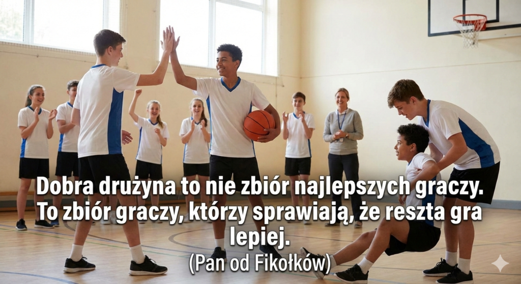 Wszyscy to znamy. Składasz drużynę na zawody międzyszkolne, wybierasz samych liderów, a na boisku... chaos. Każdy chce być bohaterem, każdy chce oddać rzut, a piłka „parzy”, gdy trzeba ją podać słabszemu koledze. Jako nauczyciele z pasją wiemy, że sport to nie tylko statystyki, ale przede wszystkim chemia i relacje. Gracz, który sprawia, że inni grają lepiej, to skarb. To ten uczeń, który: