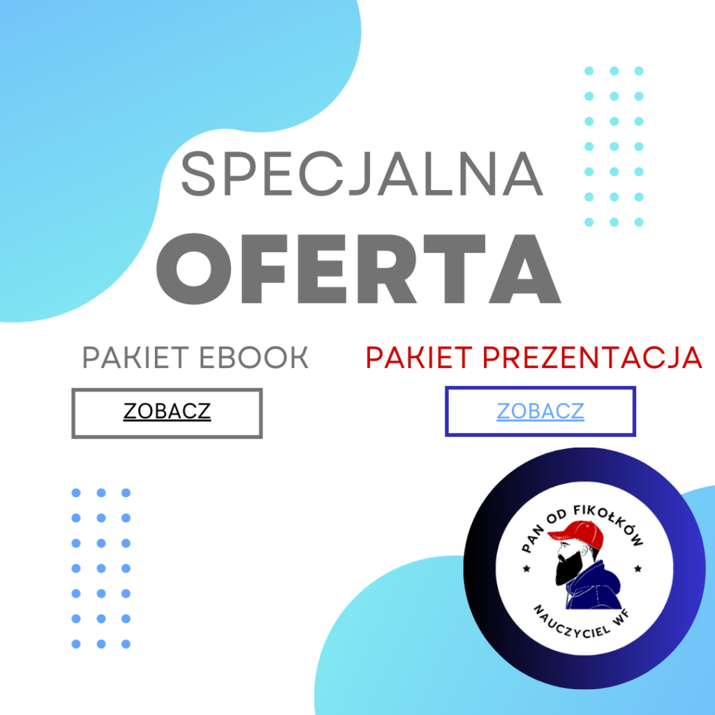 Mam dla Ciebie również krótką ankietę dotyczącą strony PAN OD FIKOŁKÓW Nauczyciel WF. Chciałbym wiedzieć, czego Wy jako moi obserwatorzy szukacie – jakie materiały Was interesują, jakie są Wasze ulubione tematy, a może czego wam brakuje i z czym macie największe problemy w swojej pracy. Twoja opinia jest dla mnie niezwykle ważna, dlatego z góry dziękuję za poświęcenie chwili na wypełnienie ankiety! Link do ankiety poniżej https://docs.google.com/forms/d/1HNhetDRLTUL25-lvwFX9da-haDDnZCfFa2xvVZ_PYFQ/edit
