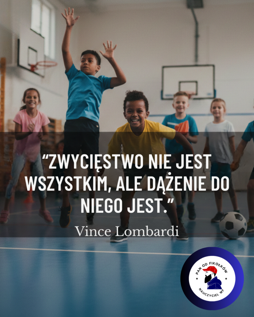 SIEMANKO MOI DRODZY, Jak wam minął weekend? Mam nadzieję, że dobrze, zbliżamy się do zakończenia semestru, więc zapowiada się trochę więcej roboty. Ps. Przygotowuję cos extra, pewnie jesteś ciekaw ? powiem tak, to będzie coś co ułatwi pracę tzn. MEGA BOX PANA OD FIKOŁKÓW. Co będzie w środku ? Już niedługo się dowiesz. Wracam do tematu, kolejna myśl motywacyjna dla was. Dzisiaj na tapet biorę klasyka. Vince Lombardi powiedział kiedyś: "Zwycięstwo nie jest wszystkim, ale dążenie do niego jest". Na pierwszy rzut oka brzmi to jak typowy "coachowy" slogan, ale jeśli wejdziesz głębiej w buty nauczyciela WF-u, odkryjesz w tym zdaniu coś więcej. Jako specjaliści, wiemy jedno: wynik meczu na lekcji to tylko statystyka. To, co zostaje w dzieciaku na całe życie, to proces.