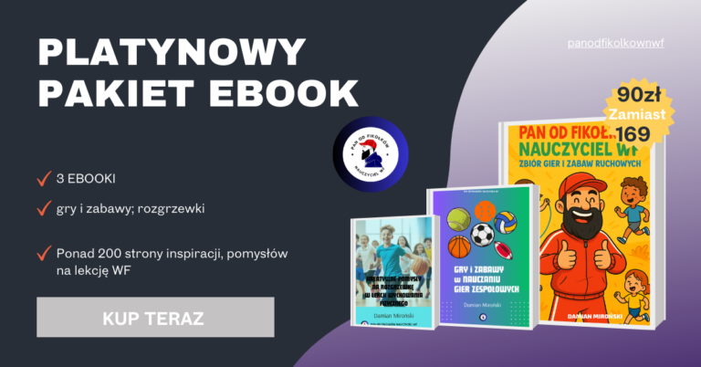 Platynowy pakiet to kompleksowy zestaw trzech ebooków, który dostarczy Ci setki innowacyjnych pomysłów na rozgrzewki, gry ruchowe i naukę gier zespołowych, zamieniając każde zajęcia w fascynującą i pełną energii przygodę dla uczniów.